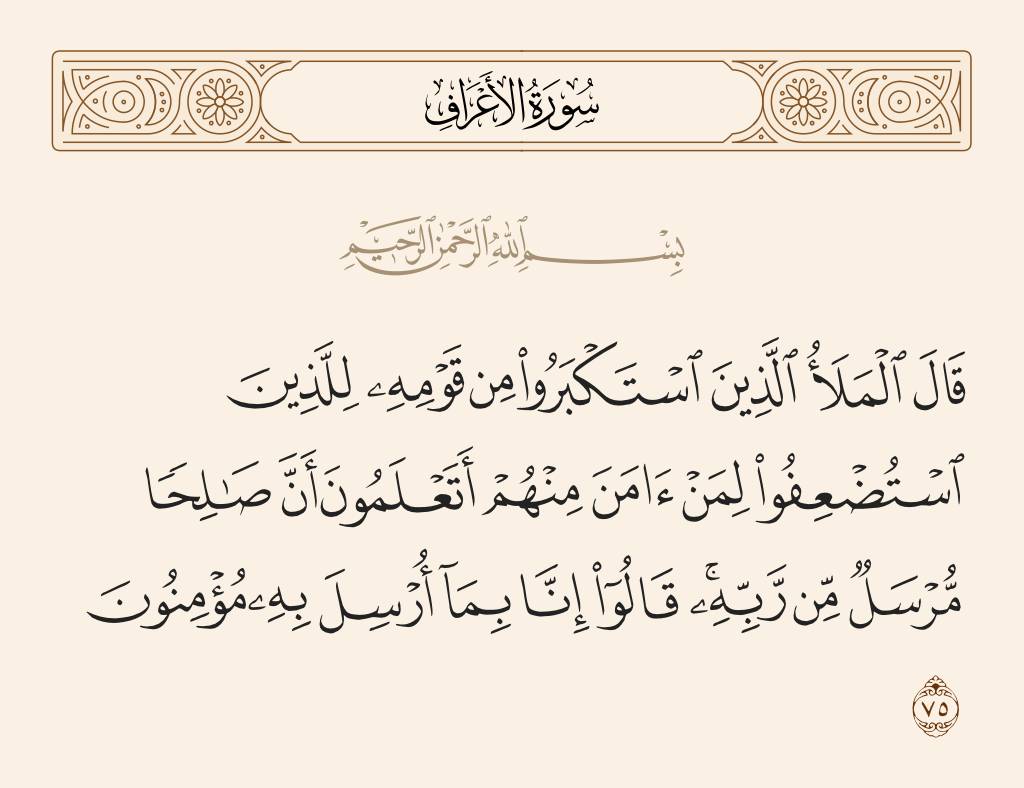 ﴿ قال الملأ الذين استكبروا من قومه للذين استضعفوا لمن آمن منهم أتعلمون أن صالحا مرسل من ربه قالوا إنا بما أرسل به مؤمنون ﴾